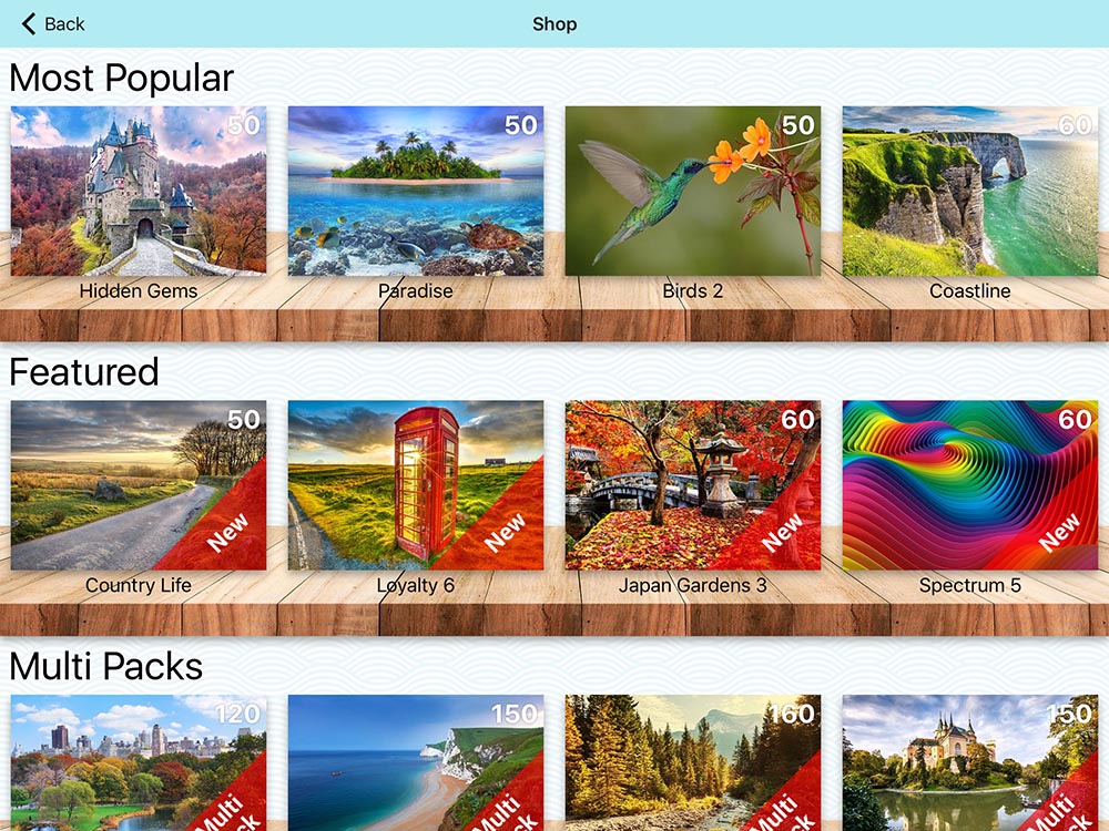 The apps shop offers a great variety of puzzle theme packs to choose from, covering all tastes and for all ages. It includes free packs, reward packs and packs for you to buy. We add new theme packs every week of the year so the fun never ends!